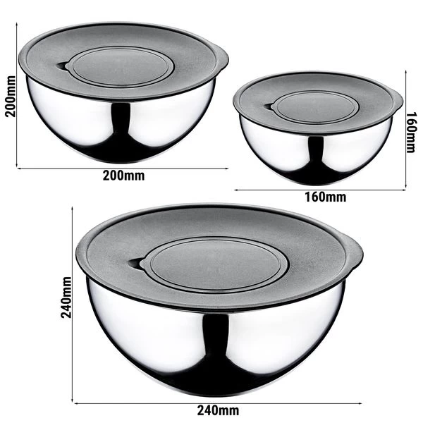 - 3 x Rühr- und Aufbewahrungsschüssel aus Edelstahl mit einem Durchmesser von Ø 160, 200 und 240 mm