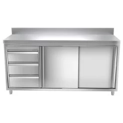 Edelstahl Arbeitsschrank PREMIUM – 2000x600mm – Mit 3 Schubladen Rechts & Aufkantung