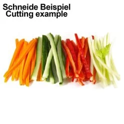 - Zum Schneiden von Pommes (8x8mm, 10x10mm, 14x14mm oder 14x17mm) sowie Chips 2mm durch Verwendung verschiedener Messermodelle