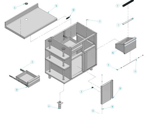 - Korpus, Tür und Schubladen aus hochwertigem Edelstahl AISI 304