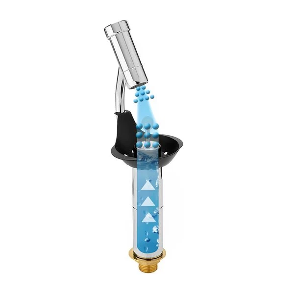- Integriertem Wasserstrahl-Regler am oberen Sprühkopf