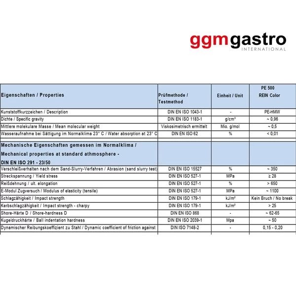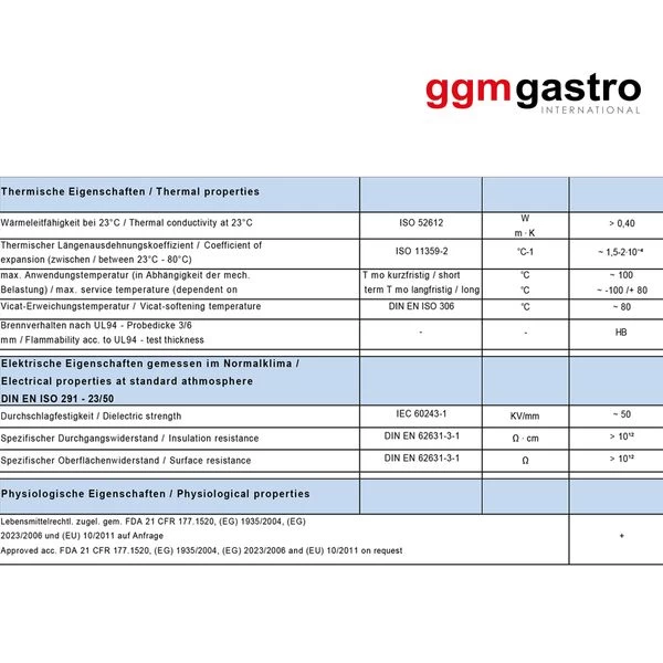 - Material entspricht den europäischen Nahrungsmittel-Normen