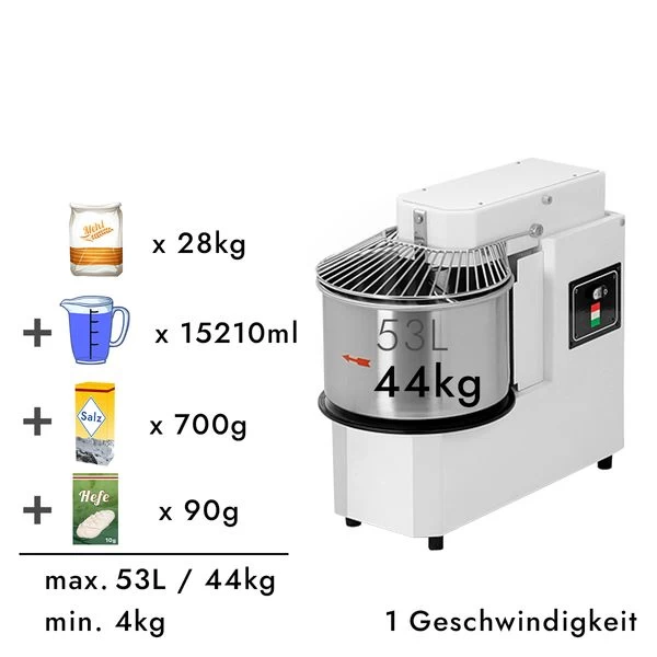 | Maximale Teigmenge | 44 kg |