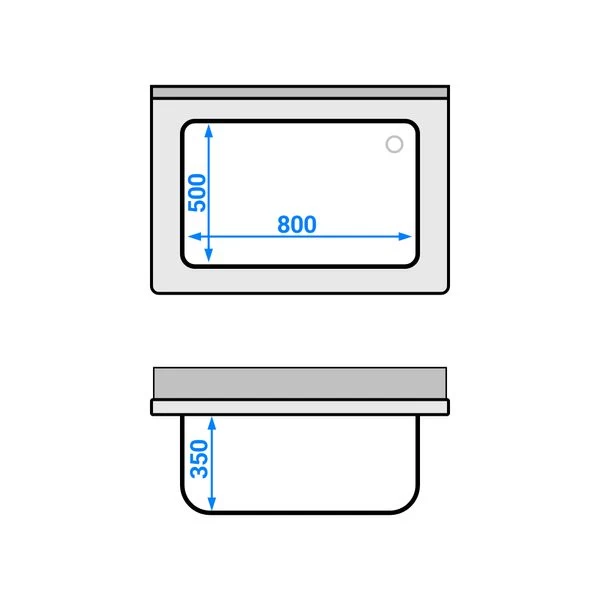 - Beckenmaß B x T x H: 800 mm x 500 mm x 350 mm